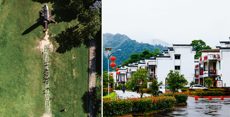 2018年7月29日,瑞金市率先在贛南脫貧摘帽,“共和國搖籃”在全面建成小康社會道路上邁出關鍵一步。左圖為2018年7月21日拍攝的江西瑞金市紅軍烈士紀念塔的鳥瞰圖(黃龍/攝)。右圖為2019年5月6日拍攝的華屋村新貌(新華社記者蘭紅光/攝)。華屋村位于江西瑞金市葉坪鄉,是遠近聞名的“紅軍村”。